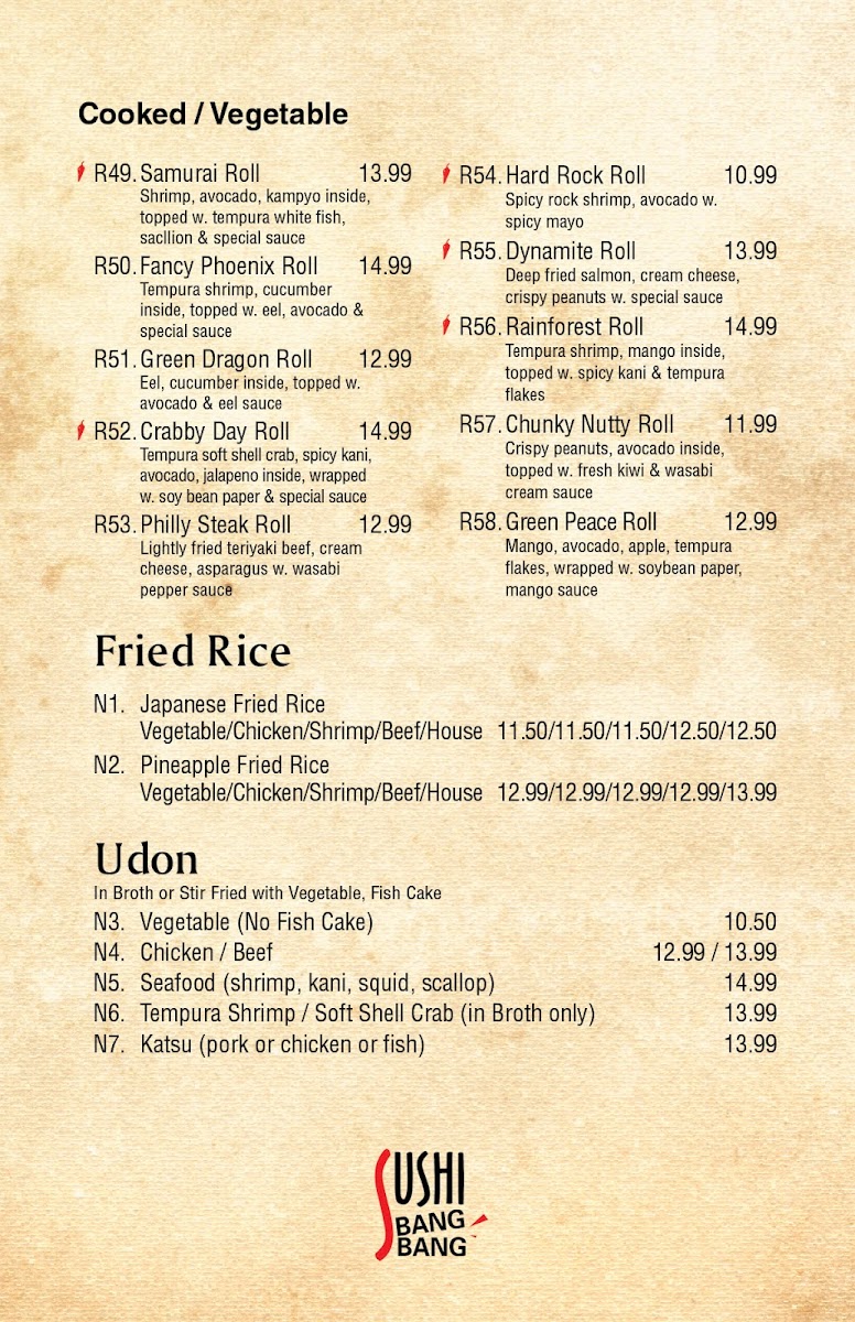 Welcome to Sushi Bang Bang, a culinary gem nestled in Austin, TX. This vibrant eatery promises an exceptional dining experience with its extensive menu featuring both raw and cooked sushi delights. Guests rave about the fresh, beautifully plated rolls, including the standout Monster Roll, which is a must-try. The all-you-can-eat option has garnered attention, perfect for sushi enthusiasts looking to indulge.